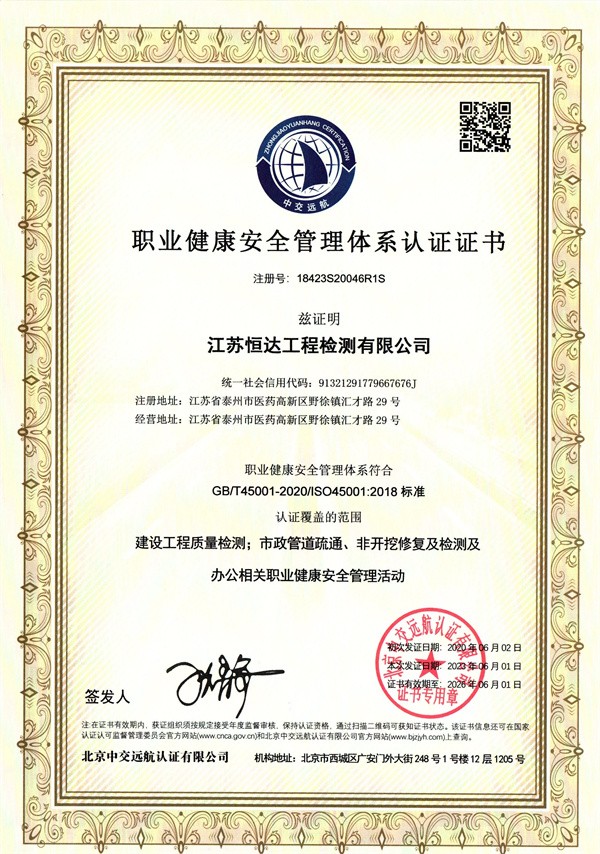 公司自2005年成立以來,建立了完善的質(zhì)量管理體系。先后通過國家認(rèn)可委國家實(shí)驗(yàn)室CNAS認(rèn)可,國家質(zhì)量監(jiān)督檢驗(yàn)檢疫總局無損檢測機(jī)構(gòu)資質(zhì)認(rèn)可,江蘇省住建廳、江蘇省質(zhì)量技術(shù)監(jiān)督局計(jì)量CMA認(rèn)證;被江蘇省施工企業(yè)管理委員會(huì)評(píng)為江蘇省質(zhì)量服務(wù)信譽(yù)AAA先進(jìn)單位、被江蘇省工程質(zhì)量監(jiān)督辦公室授予為江蘇省重質(zhì)量守信譽(yù)誠信檢測單位,是一家具有獨(dú)立法人資格的第三方公正檢測機(jī)構(gòu)。